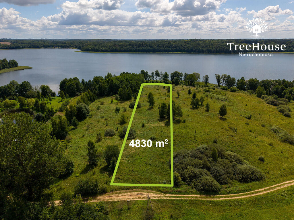 Uzbrojona działka z linią brzegową jezioraOznaczenie granic działki na zdjęciach i filmie jest orientacyjne.